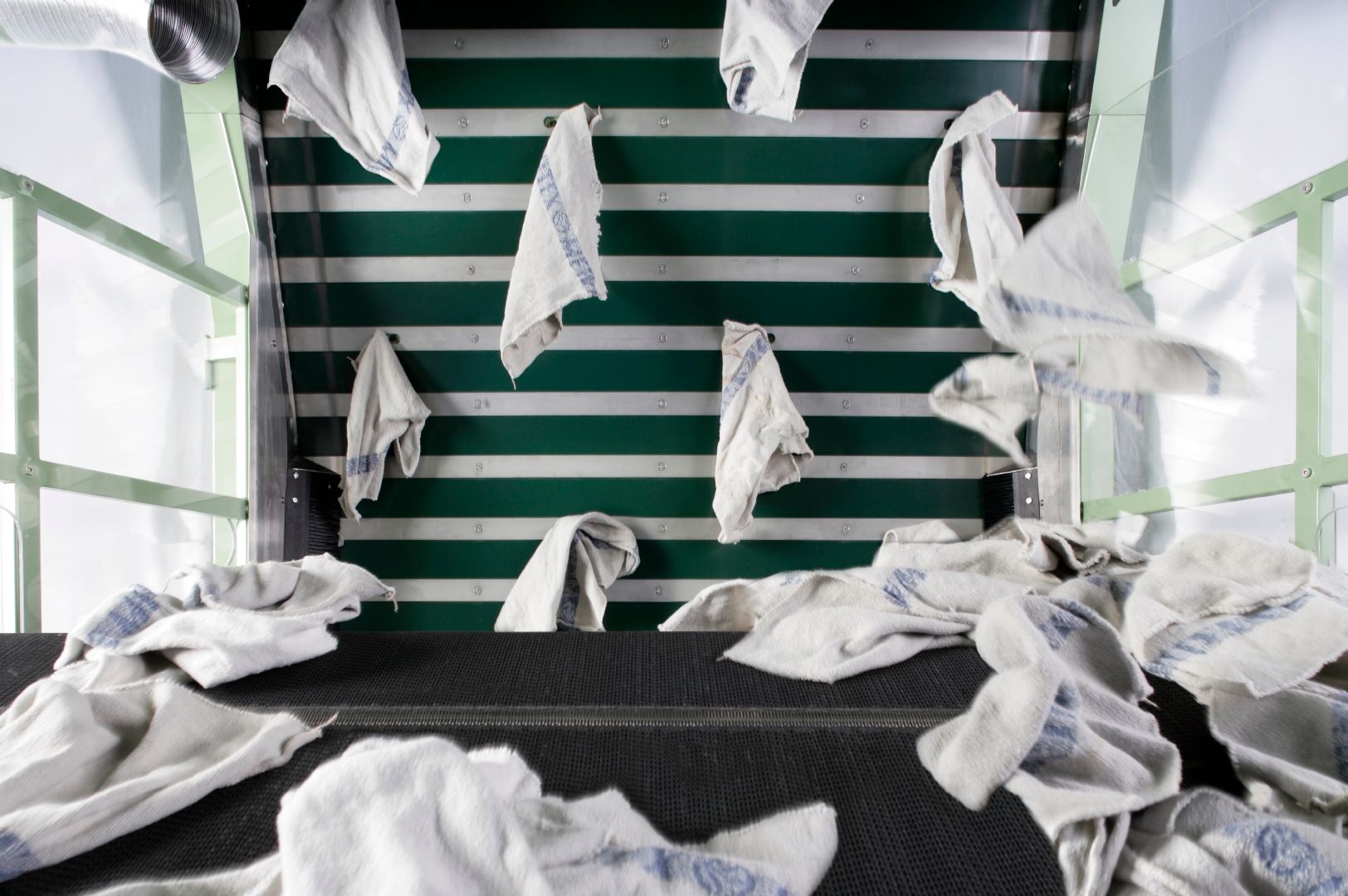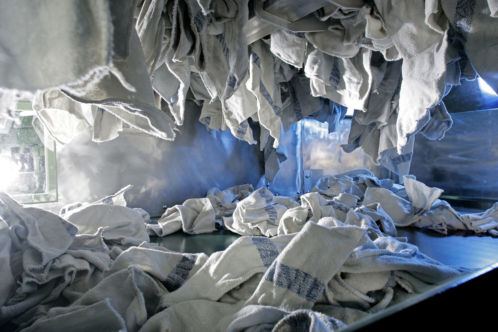 MEWATEX Tücher: Die verschmutzten Putztücher werden umweltschonend gewaschen und wieder dem Kreislauf zugeführt. (Fotos: Mewa)